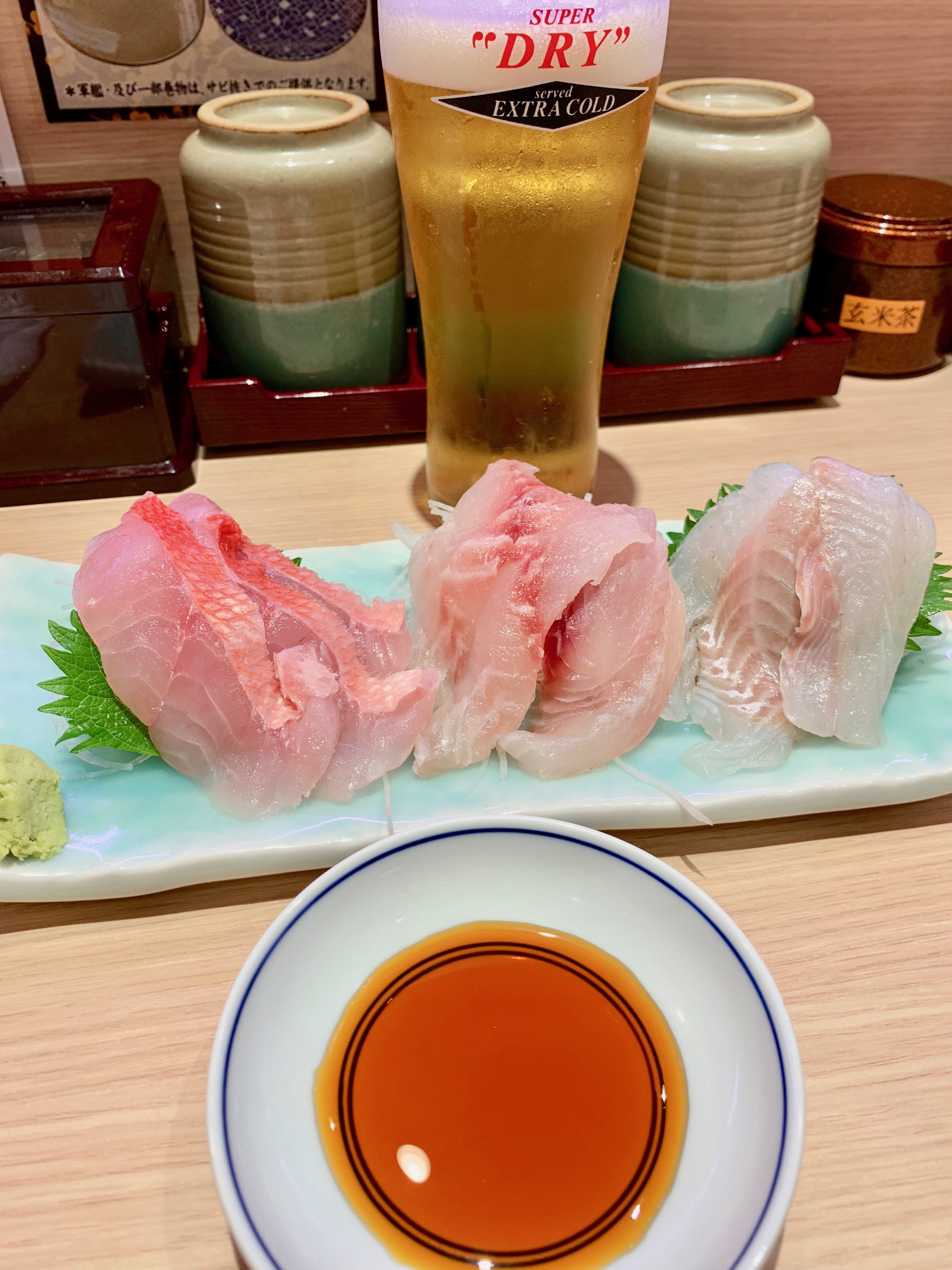 刺し身はお任せなので、ビールだけ頼んで好きなものを刺し身で頂いた方が良かったと後悔。