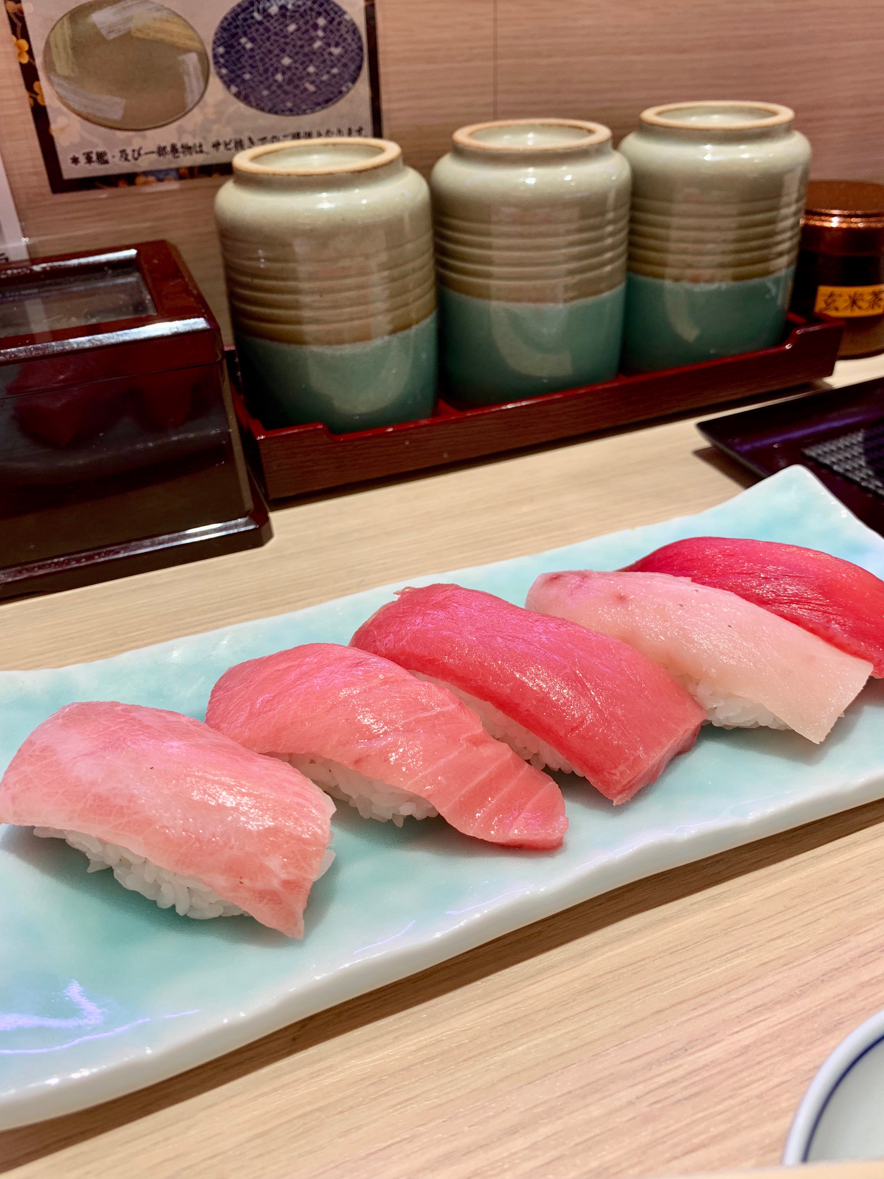 左3つが「本鮪」の大トロ、中トロ、赤身と書いてあったのでチェック。